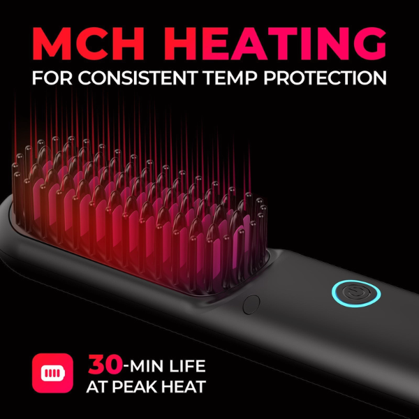 Nous avons conçu une brosse lissante sans fil nouvelle génération, capable de corriger votre coiffure à tout moment, sans prise électrique, où que vous soyez.